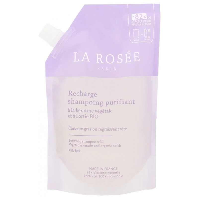 La Rosée Purifying Shampoo Refill 400ml is a frequent-use shampoo particularly suited to oily or rapidly re-greasing hair.
