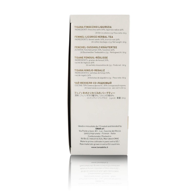 La Via del Te Herbal Tea with Fennel and Liquorice, 20 Teabags, Total Net Wt: 60g / 2.12oz