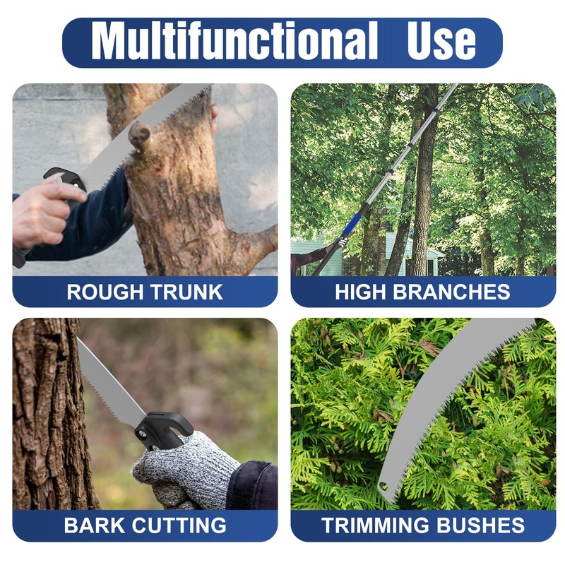 • Comfortable Grip for Safe Handling:The grip is made of insulating material with an anti-slip design, ensuring stable holding even in wet conditions. The pole pruner's connection to the telescoping pole uses a reinforcing screw to secure the saw head to the pole, preventing loosening and potential injury.Our pole saws for tree trimming allows you to safely prune high branches from the ground, ensuring you have a beautifully manicured garden.
