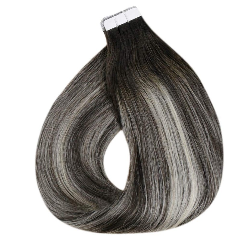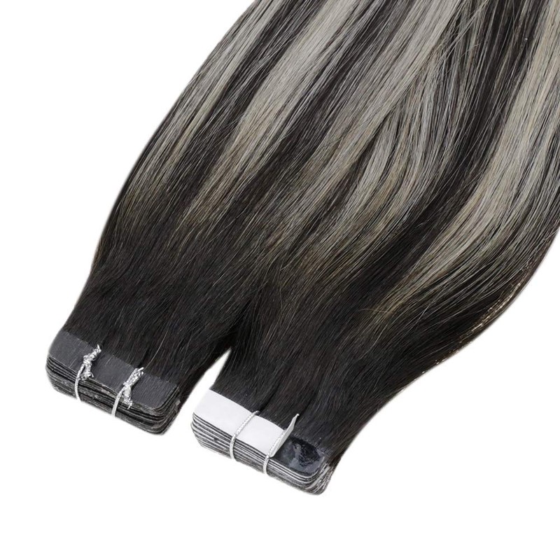 - 【Fashionable Color】 Black Ombre Remy Tape Human Hair Extensions; Color #1b/silver Off Black Ombre Silver Grey. 【All Photos are Taken by LaaVoo Hair. Different Monitors Will show color a bit different. Please Just Feel Free to Contact With Seller If You Have Any Troubles About Choosing Colors】