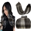 LaaVoo Black Tape in Hair Extensions Human Hair Ombre Off Black to Silver with Black Balayage Tape in Human Hair Extensions for Black Women Skin Weft 22 inch Long 20pcs 50g