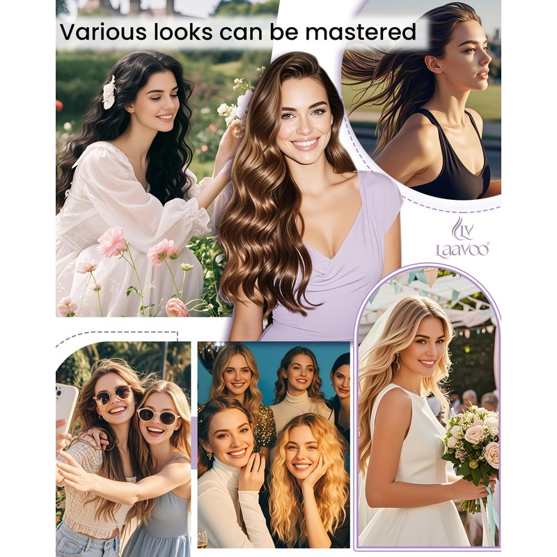 Instantly transform your hair with LaaVoo Hair Extensions Clip in! LaaVoo hair is fun, fashion-forward, and Clip in Hair Extensions Real Human Hair can be easily placed just by clipping them in without the hassle of glues, tapes, or weaves, no harm to your own hair.