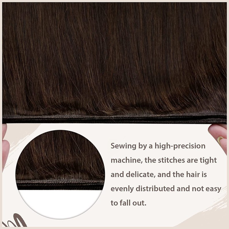 - Double-weft weave hair extensions: the clean and tight double weft hair bundles that can ensure that our product contains more hair, and that keep the thickness more easily This process produces short hair at the root of the double weft, but please understand that this is normal