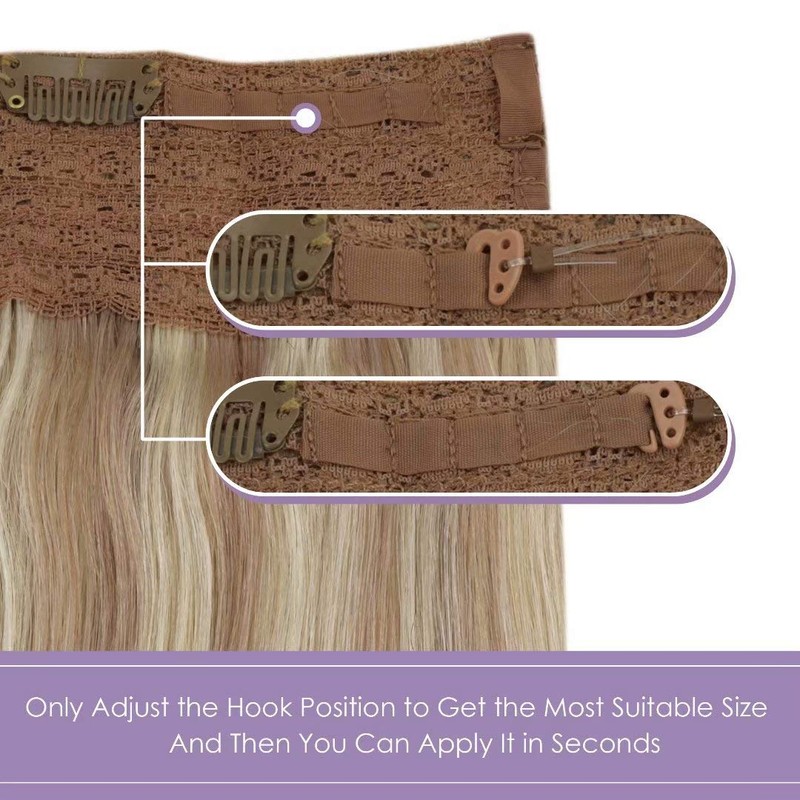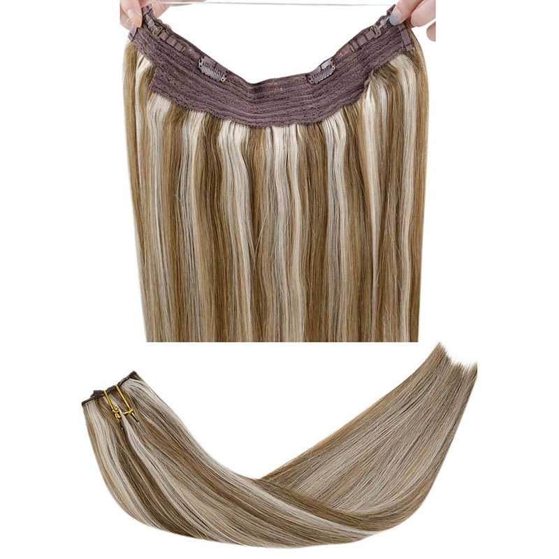 LaaVoo Secret Real Hair Extensions with Invisible Wire, Highlighted Golden Brown with Light Blonde, Wire Extensions, Real Hair, Fish Wire, Remy Secret Hair, #P8/60, 80 g, 40 cm