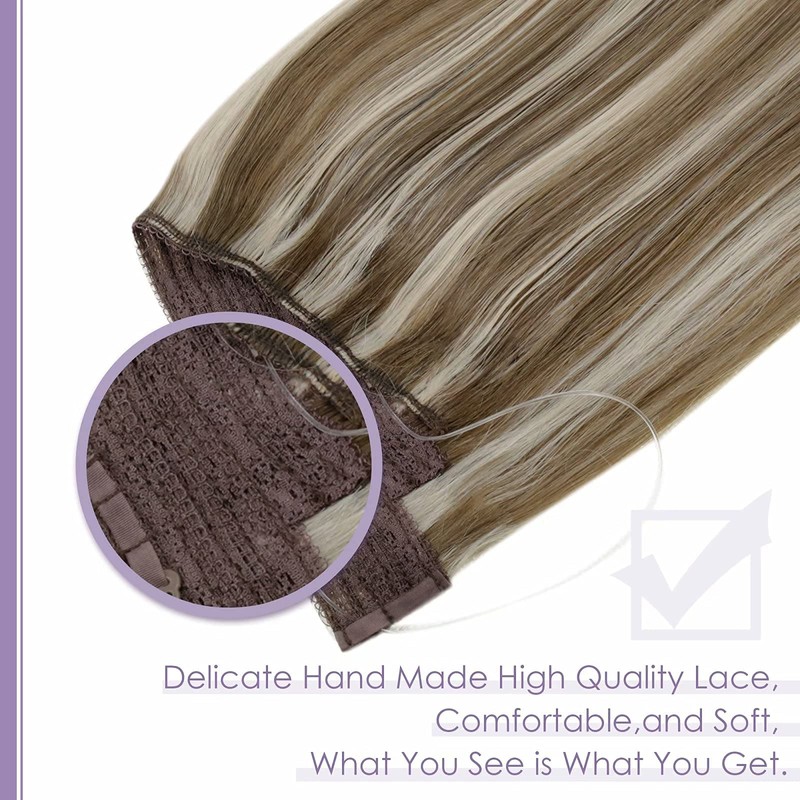 LaaVoo Secret Real Hair Extensions with Invisible Wire, Highlighted Golden Brown with Light Blonde, Wire Extensions, Real Hair, Fish Wire, Remy Secret Hair, #P8/60, 80 g, 40 cm