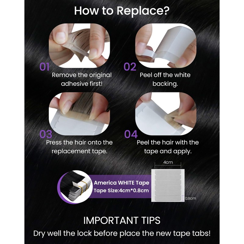 • 【Maximum Hold-tapes】No worries about tapes slipping off! We utilize professional American white glue for good adhesion. Each pack of our black tape in extensions real human hair includes replacement tapes, allowing for an easy installation and removal process,requires only simple routine maintenance. Reuse is also possible with our extensions.