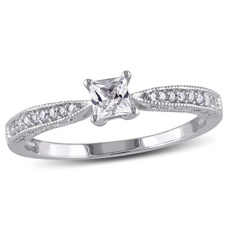 Lab-Created White Sapphire 1/4 Carat (ctw) Princess Cut Engagement Ring with Diamonds in Sterling Silver