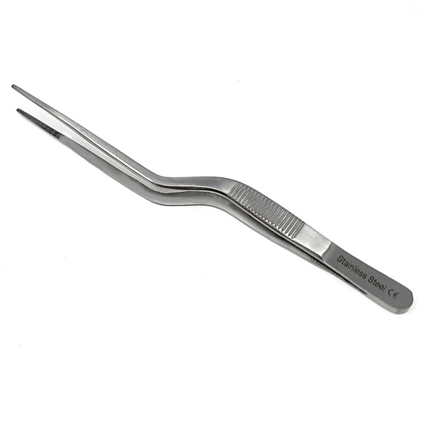 Lab Forceps Offset Bayonet Handle Tweezers with Fine Precision Serrated Tips for Multifunction Laboratory Dissecting Work, Handling Objects, Professional or Personal Use, Stainless Steel - 6.25"
