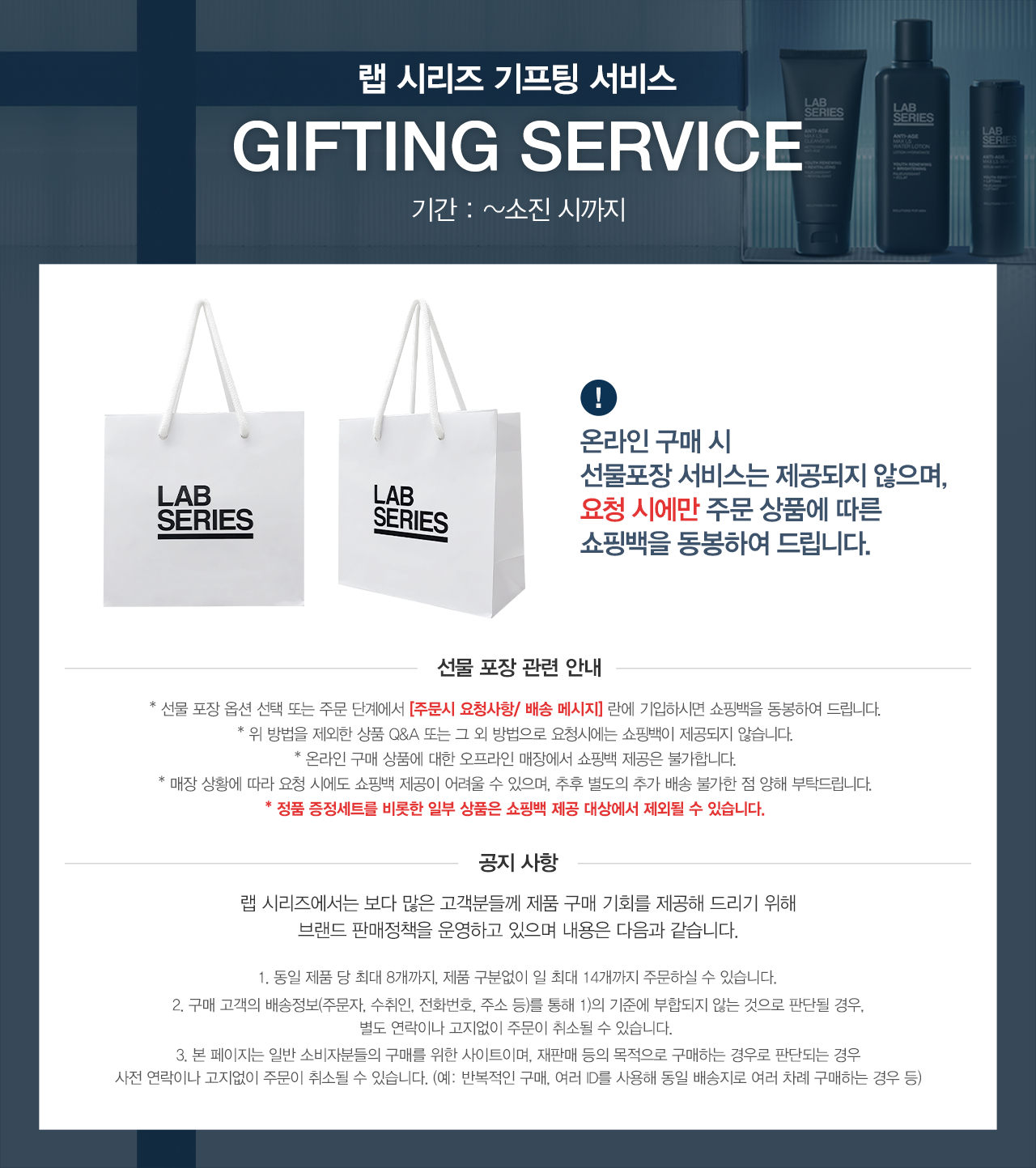 For detailed product inquiries: Galleria Department Store (Hanwha Galleria Co., Ltd. Gwanggyo Branch) Lab Series T.031-5174-7155
