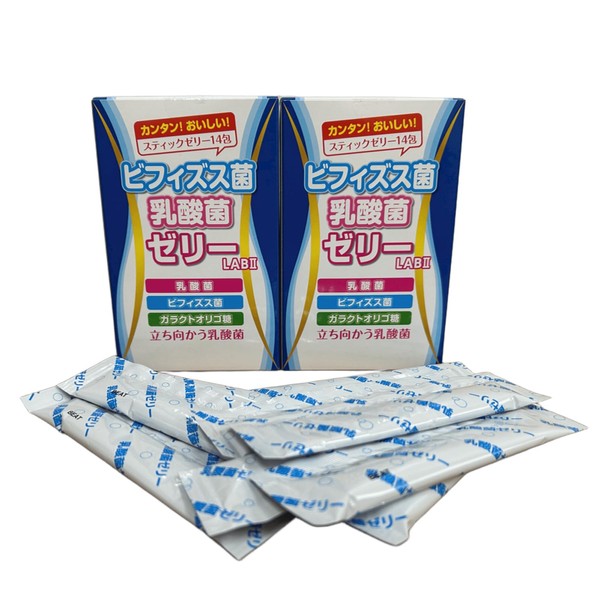 乳酸菌ゼリーLAB ビフィズス菌 乳酸菌 1200億個 オリゴ糖 コラーゲン ヒアルロン酸 小腸と大腸に働く ゼリータイプ スティックタイプ (2箱)