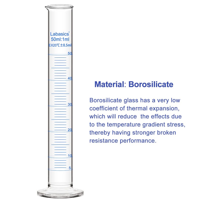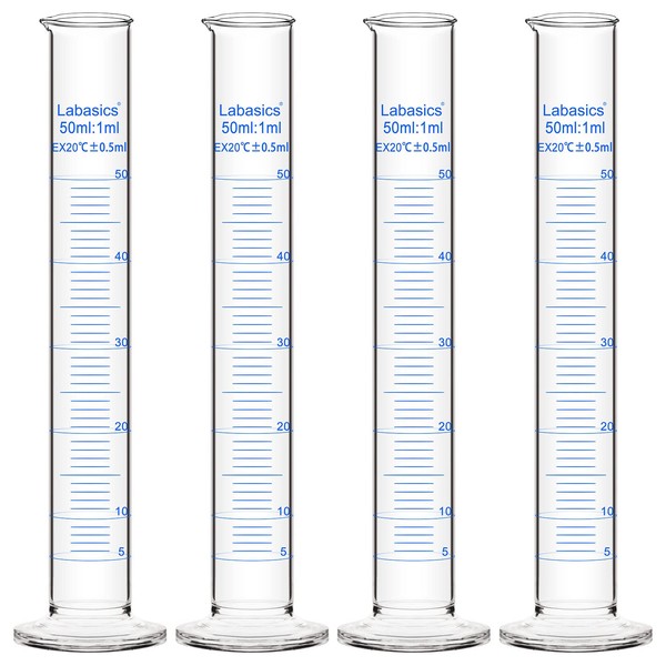 Labasics 4-Pack Borosilicate Glass 50 ml Heavy Wall Graduated Cylinder Measuring Cylinder