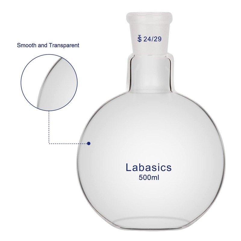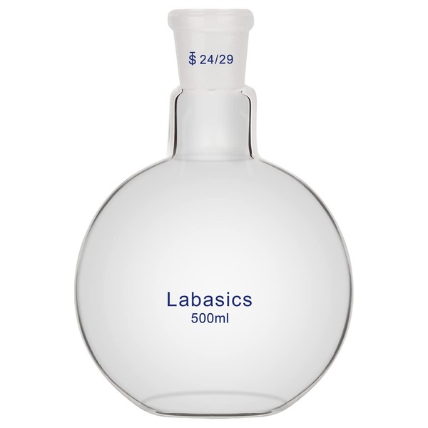 Labasics Single Neck Flat Bottom Boiling Flask, Borosilicate Glass Flat Bottom Boiling Flask with 24/29 Standard Joint, 500 ml