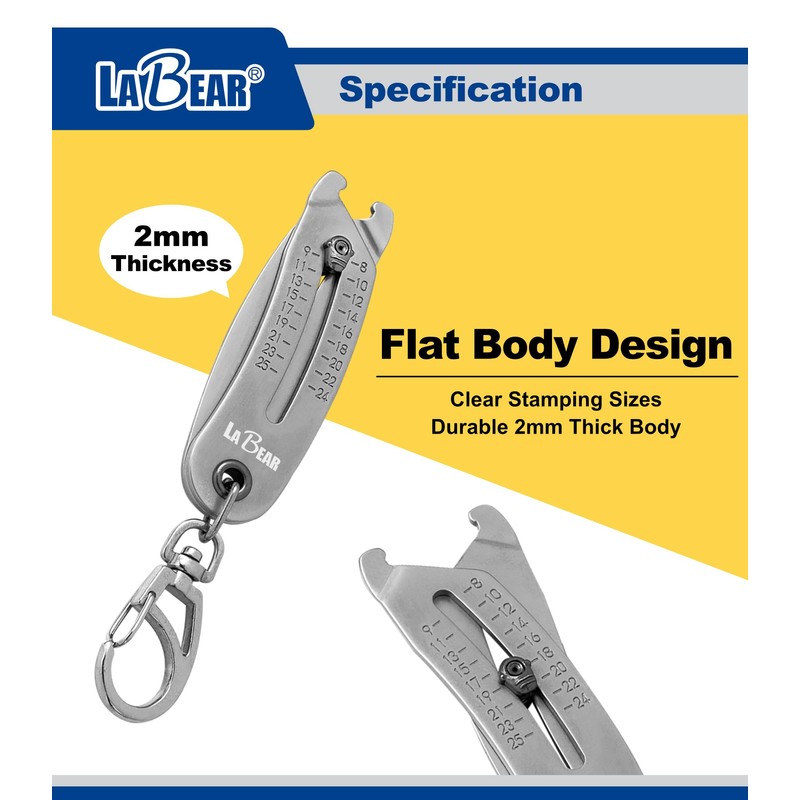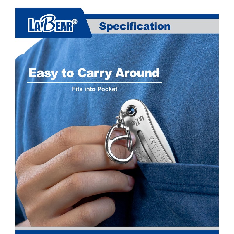 LABEAR Nut and Bolt Size Gauge Keychain, Thread Checker & Identifier, SAE & Metric Fastener Measuring Tool 5/16"-1" / 8–25mm, Pocket Socket & Wrench Size Finder for Automotive, Repair & DIY