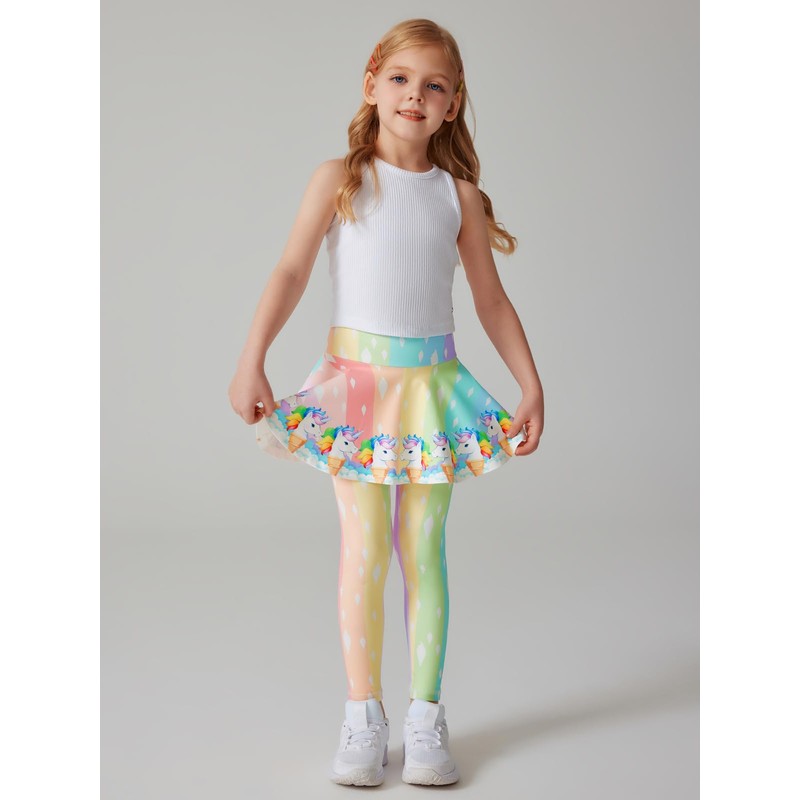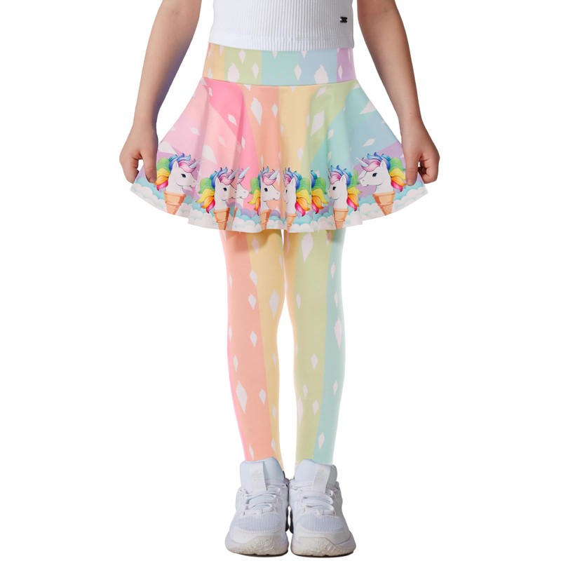LaBeca Little Girls Leggings with Skirt Printed Pants Icecream Unicorn 120Y