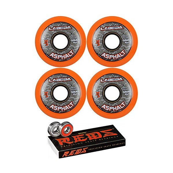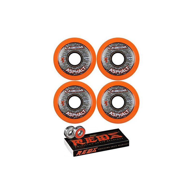 Labeda Asphalt Inline Roller Hockey Wheels 68mm Orange 85A 4-Pack Bones Reds
