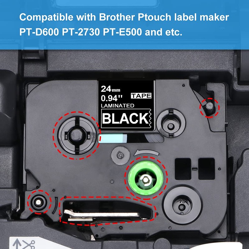 - Compatible with ptouch labeler that using 0.94’’ 24mm TZe TZ Tapes. Such as PT-1400, PT-1500PC, PT-1600, PT-1650, PT-2200, PT-2210, PT-2300, PT-2310, PT-2400, PT-2410, PT-2430PC,PT-2470, PT-2500PC,PT-2600, PT-2610, PT-2700, PT-2710, PT-2730, PT-2730VP, PT-330, PT-350, PT-3600,PT-520 Label Maker.