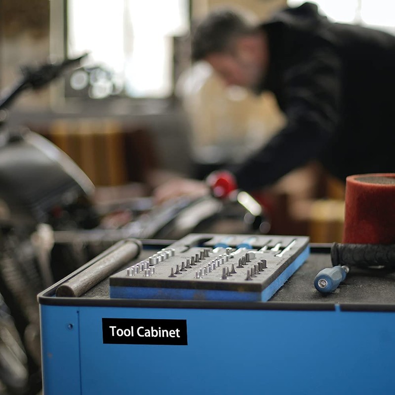 - Ideal for marking CD, file folder, seasoning bottle, etc. Outdoor applications are also allowed. Our label tapes withstand water, grease, grime, fading, and abrasion.