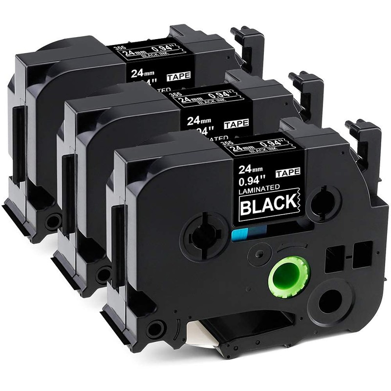 - Color: White on Black, 3-pack replacement for TZe-355. Size: 24mm x 8m(0.94 Inch x 26.2 Feet)