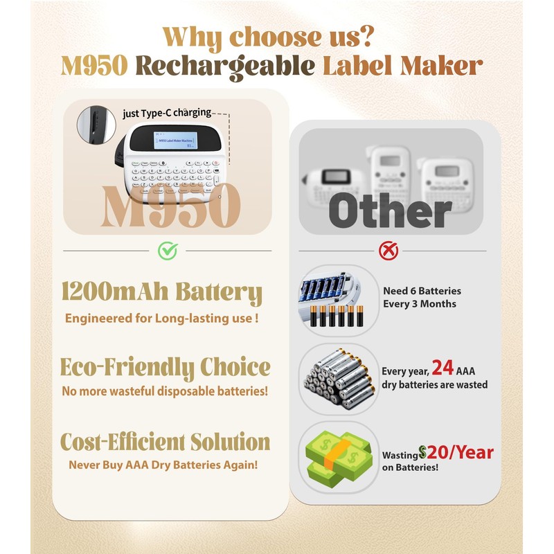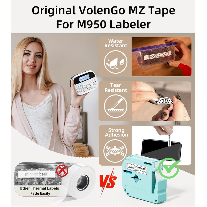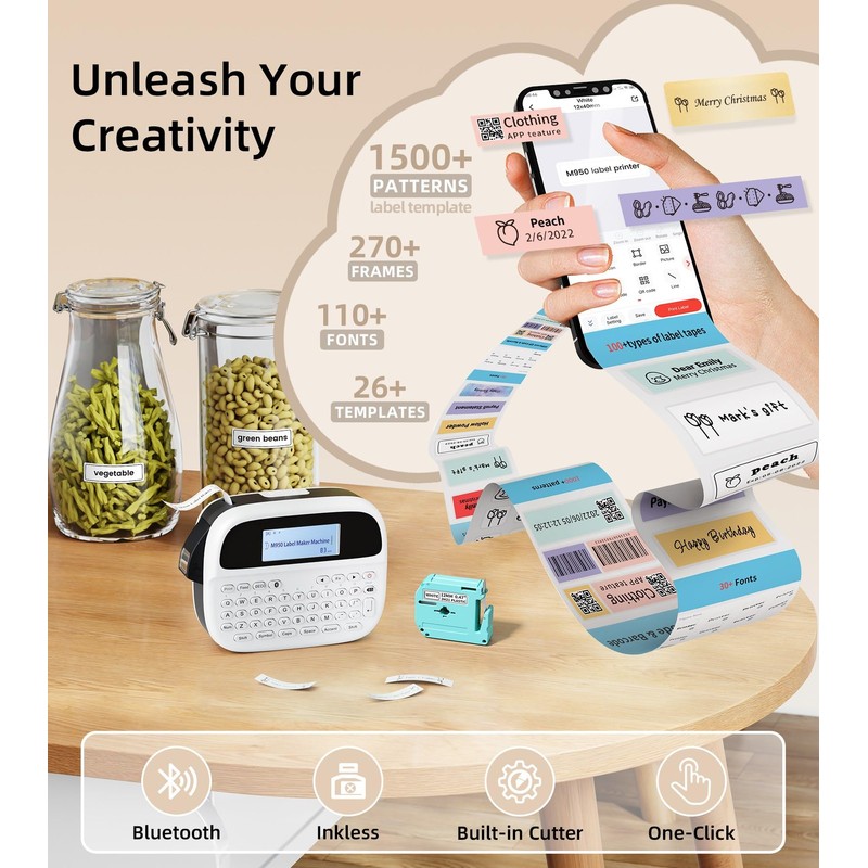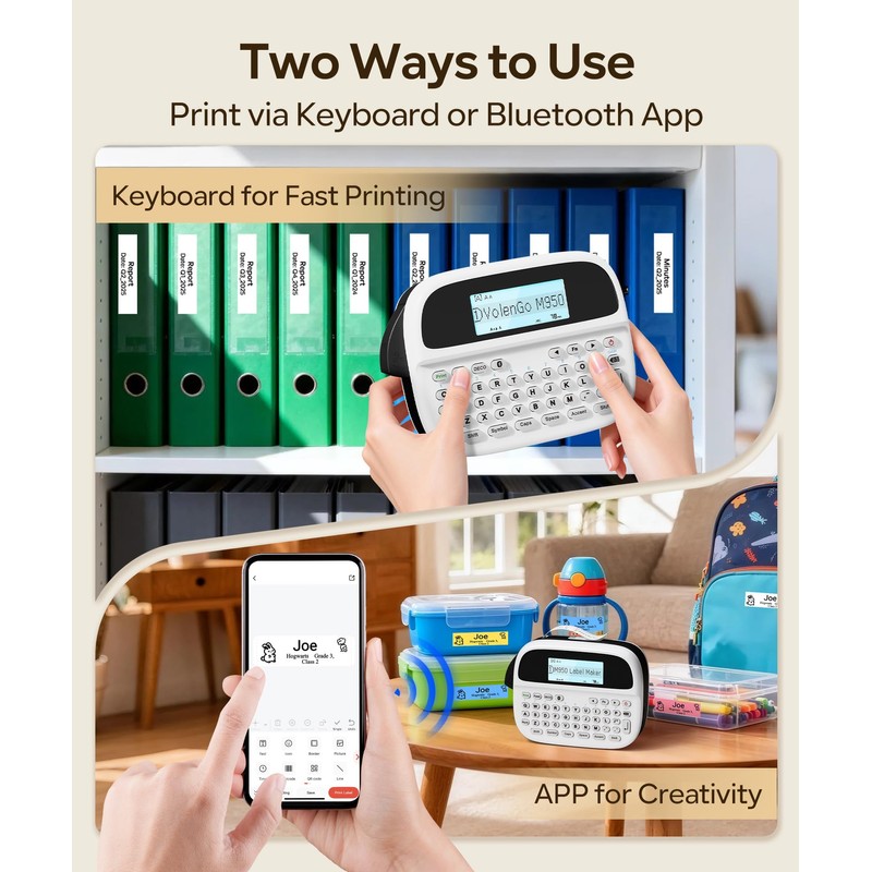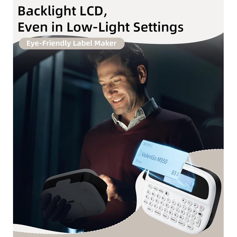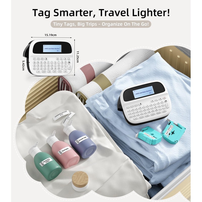 Label Maker Machine with-Tape, Label Maker Waterproof-labels, Rechargeable Backlit Portable Labeler, M950 12mm Bluetooth Label Printer for Home Organization and Storage, Office School Teacher Supplies