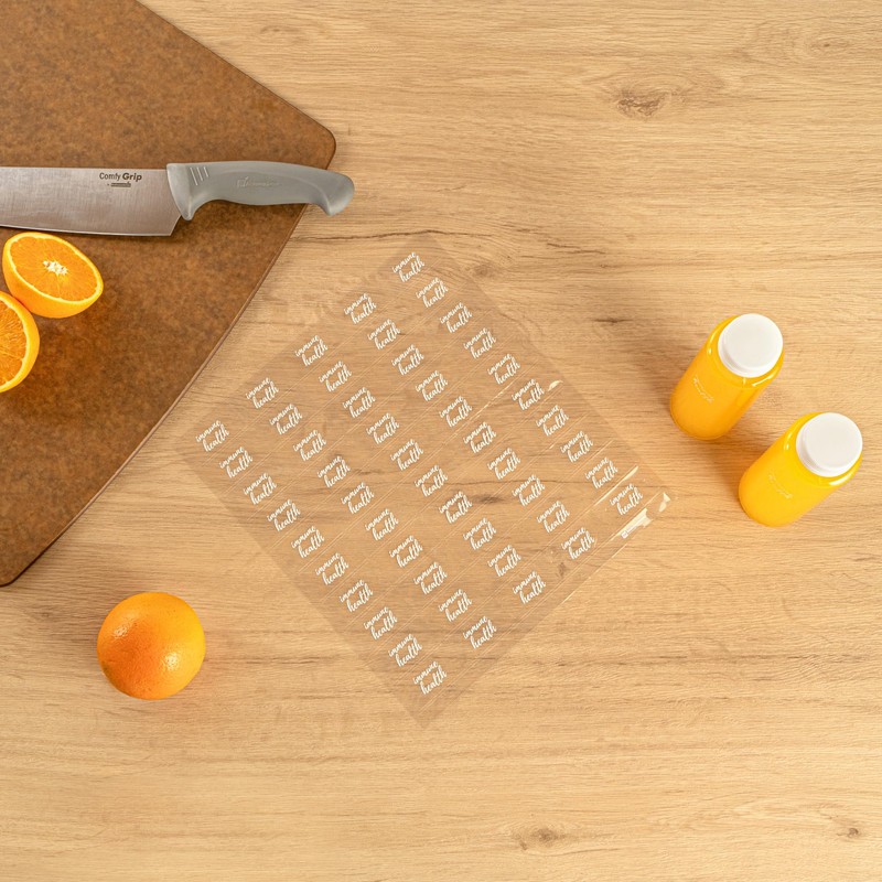 - TRENDY DESIGN: With a clear background and white font, these drink labels provide a seamless look on juice bottles and drink pouches while adding a chic twist. Bring a lovely touch to juice shots!