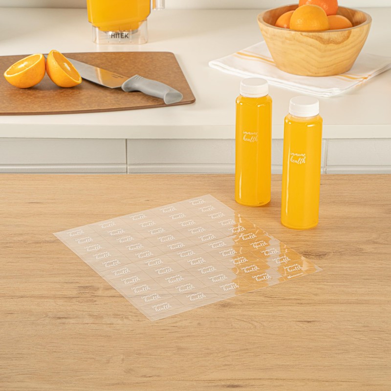 - INCLUDES 100 LABELS PER ORDER: Measuring 2 inches long by 1 inch wide, these water-resistant labels come in a sheet to easily label juices. Each order includes 100 immune health labels.