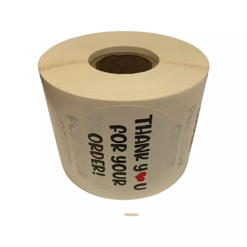 Thank You for Your Order Stickers | WHITE w/ RED Heart | 2" Round | Peel & Stick | 500 Labels