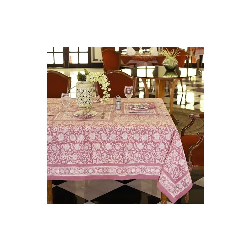 - HANDMADE INDIAN BLOCK PRINT TABLE CLOTH: Indulge in the charm of artisanal craftsmanship with our Handmade Cotton Rectangular Table Cover, thoughtfully designed for 8-seater dining tables. Measuring approximately 72 inches by 108 inches (180 cm x 270 cm), this exquisite tablecloth bears the mark of traditional hand block printing, each piece meticulously imprinted by skilled artisans in Jaipur,India. The delicate hemmed edges provide a subtle touch of elegance, enhancing the overall aesthetic.