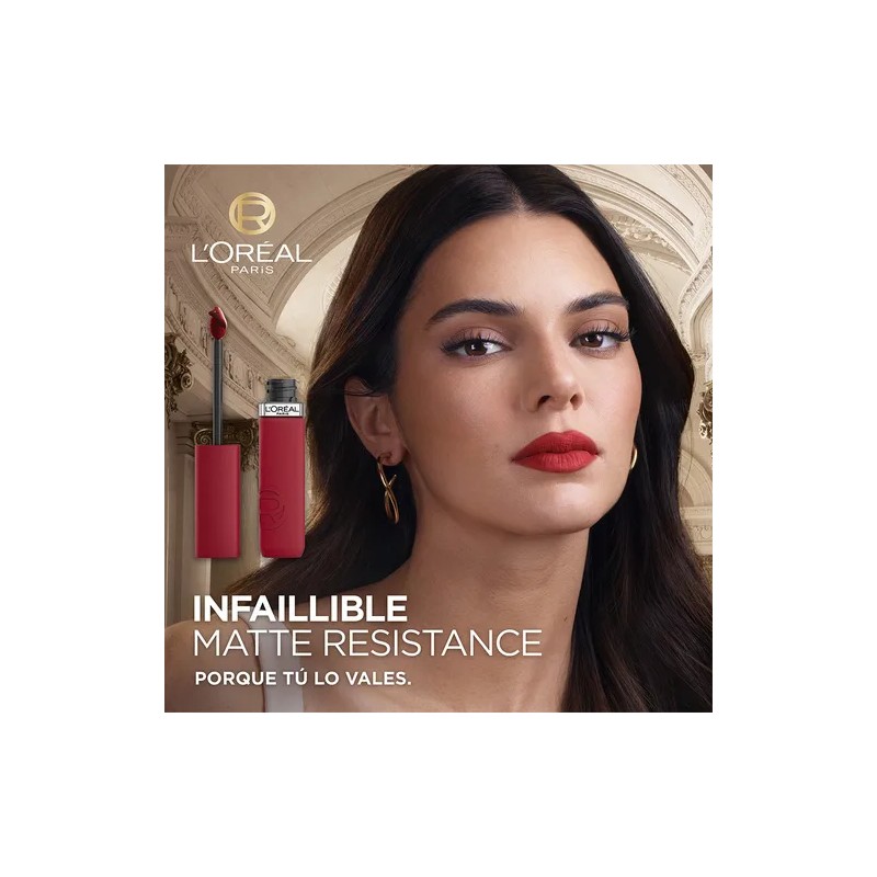 Labial Liquido Infallible Le Matte Resistance, hasta 16 horas de Duración con Ácido Hialurónico y acabado Mate Aterciopelado de L'Oreal Paris
