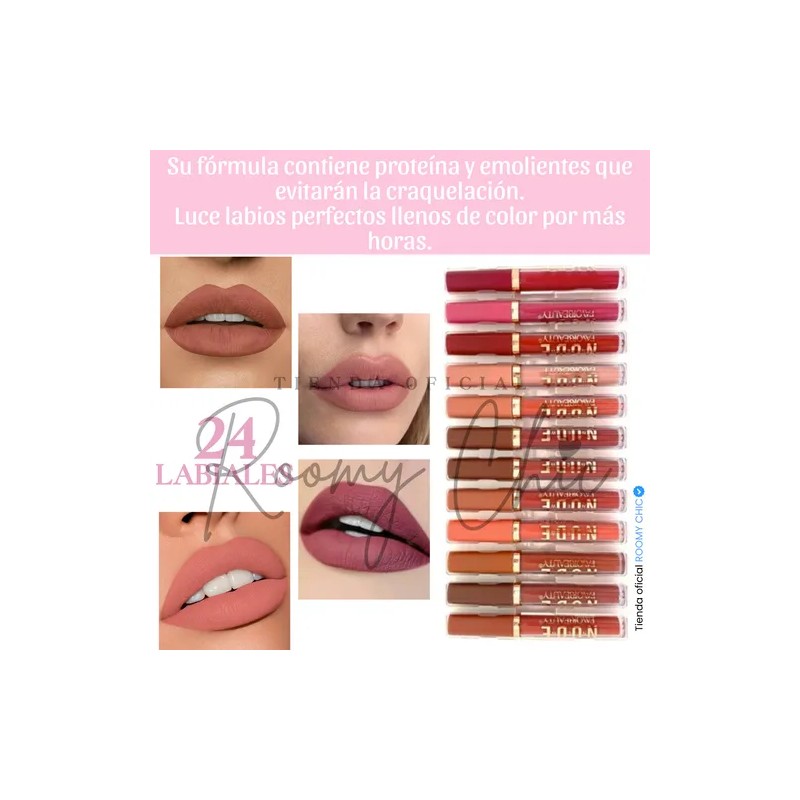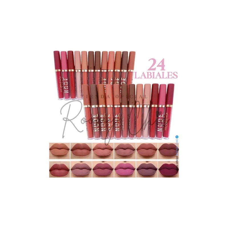 Labial Mate Indeleble Larga Duracion 24 Pz Mayoreo Color Marrón Claro