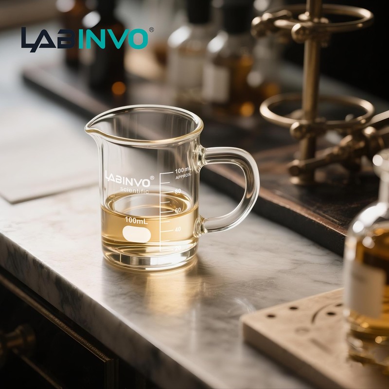 LABINVO Glass Beaker with Handle, Vol. 500ml, 3.3 Borosilicate Griffin Low Form with Printed Graduation,Pack of 4,IN-BKLH500B