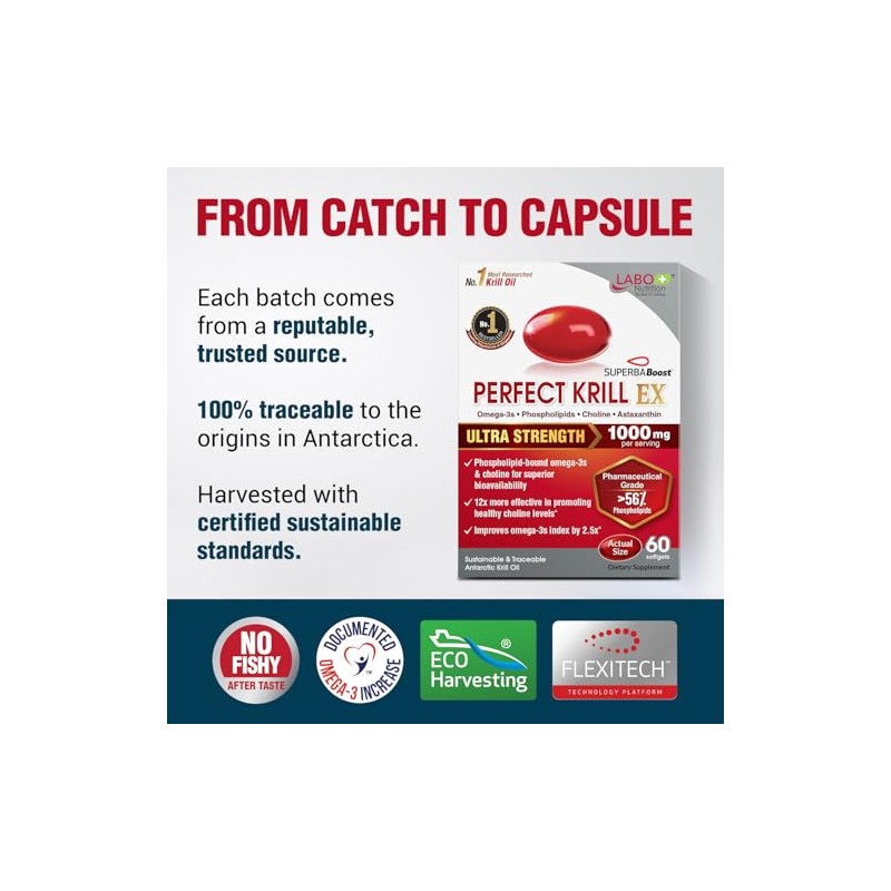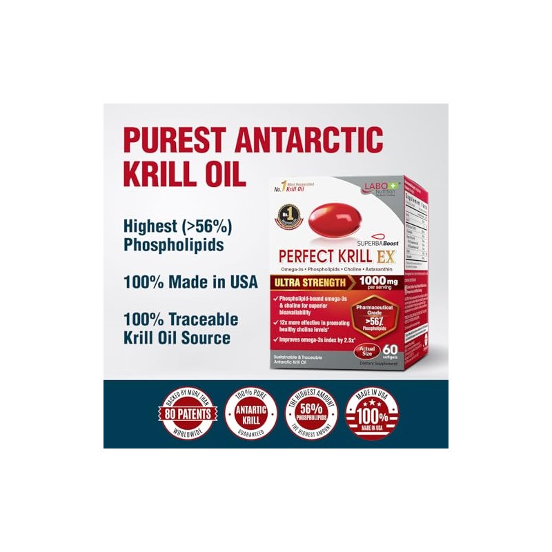LABO Nutrition Perfect Krill Ex, 1000 Mg De Aceite De Krill Antrtico Omega 3 Epa Dha, El Contenido Ms Alto De Fosfolpidos(56) Con Colina, Astaxantina