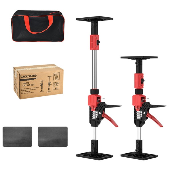 - 【Easy to Adjust】: The jack rod is well made. Simply attach the pads and press the black button to extend/retract the telescopic rod. Pump the handle to effortlessly adjust the height from 15" to 21". For quick lowering, just hold the release button and the support pole smoothly descends.