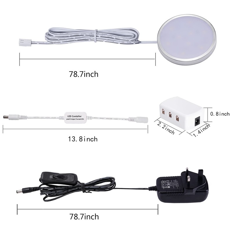 - UNDER CABINET LIGHTING : 6 cabinet lights are adjustable dimming mode kits.12V 180 LUMENS and 4000K warm white glow .The dimming function from 0 to 100% can be adjusted the under cabinet lighting brightness. The kitchen cabinet light latest dimming setting will be remembered when you are turning on next time.