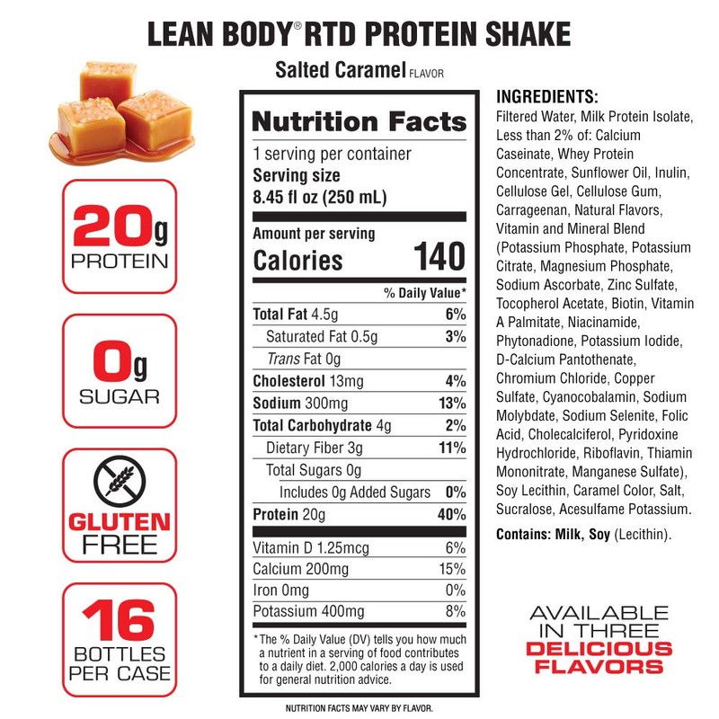 - Get 20g of protein on-the-go: forget time-consuming meal prep and counting food protein content. With labradas lean Body ready-to-drink protein shake you get a whopping 20g of protein in one tasty drink! Just enjoy your shake and imagine how each creamy, delicious sip will bring you closer to achieving your fitness goals and attaining the lean Body of your dreams. Choose between our 3 Available Flavors or try them all to find your new, lifelong favorite RTD protein shake!