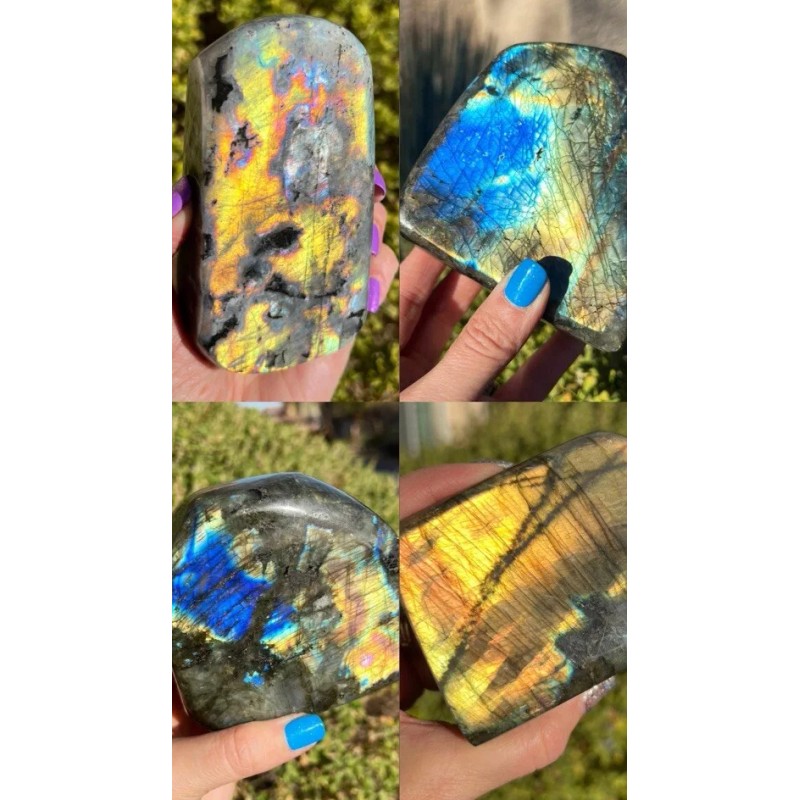 You’ll receive a flashy polished labradorite freeform weighing between 1.2lb-1.6lb. Freeform will be chosen intuitively. If you have a request, let us know in the notes and we will try to fulfill your request as best we can. Photos are examples of labradorites found in these batches and not all are currently available because they have sold.