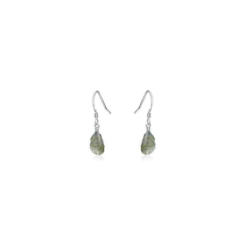 They feature raw, genuine labradorite crystals that dangle from the ear wires.