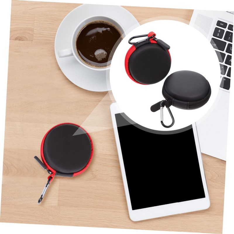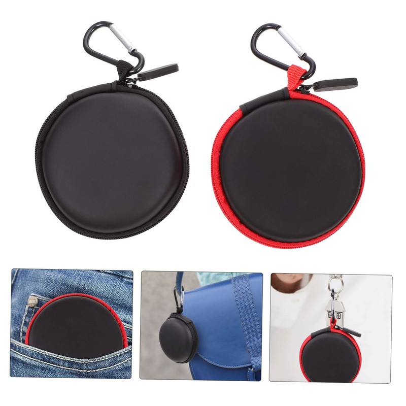 LABRIMP 2 Pcs Portable Earbud Holders Storage Bags with Carabiner Durable Key Bags for Earphones Charging Cables Essentials Round Design for Easy Organization