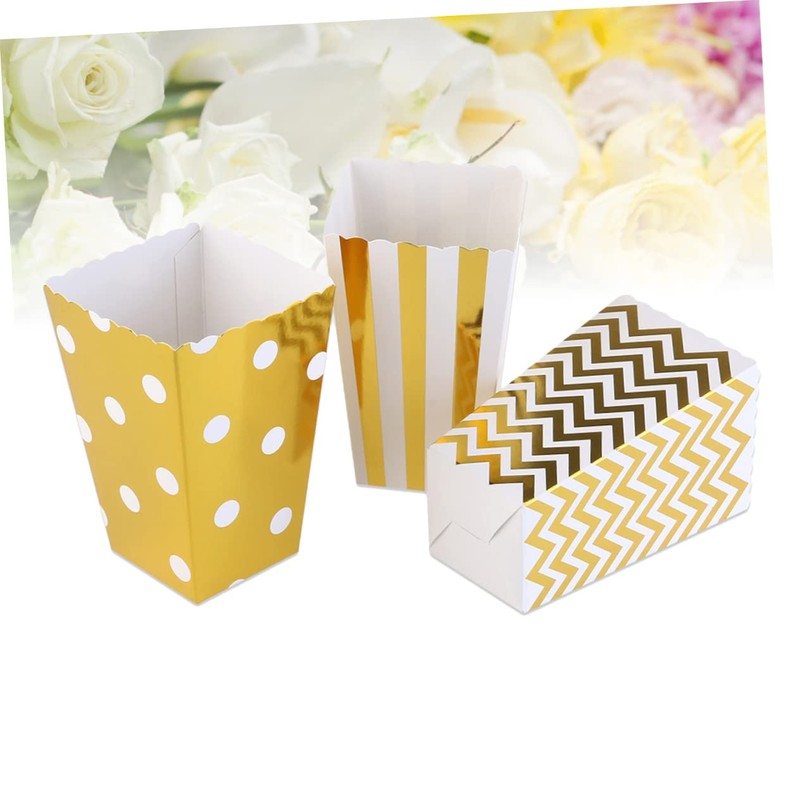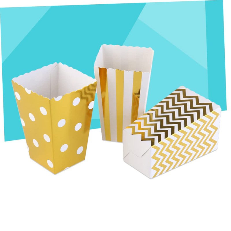 - Popcorn Paper Box: 12pcs dot pattern, 12pcs strip pattern, 12pcs wave pattern.