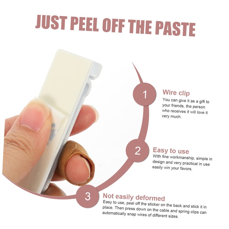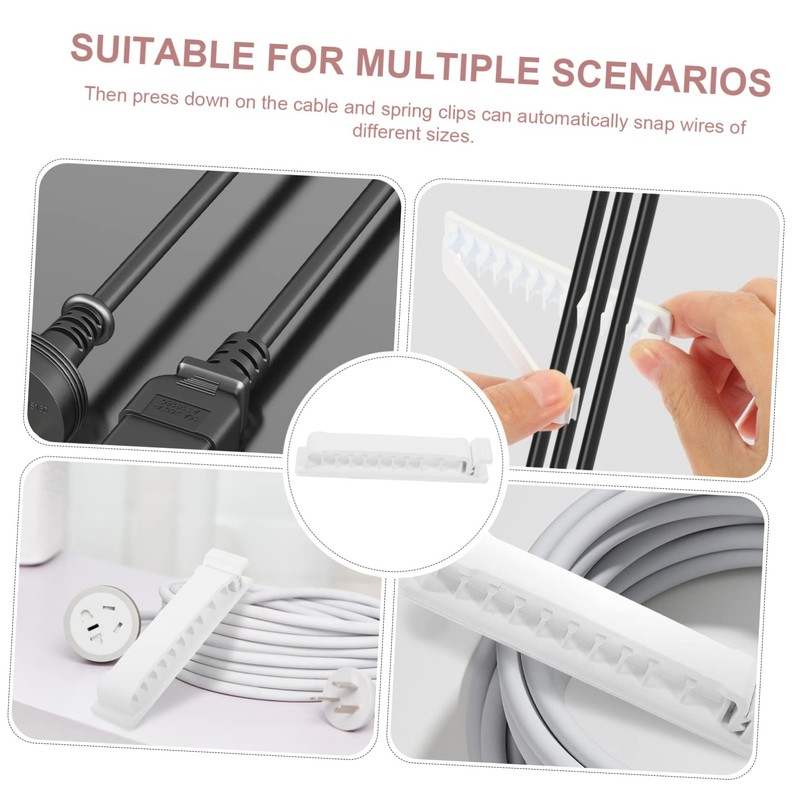 - Easy to use, tear off the sticker on the back and stick the previous position. Then press down on the cable and spring clips can automatically snap wires of different sizes cable wraps organizer.
