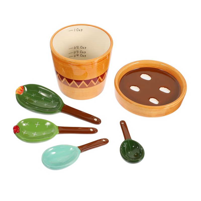 • Measuring cups and spoons-- ceramic measuring spoons shaped like cactus and planter pot, they immediately brighten up your day when cooking.