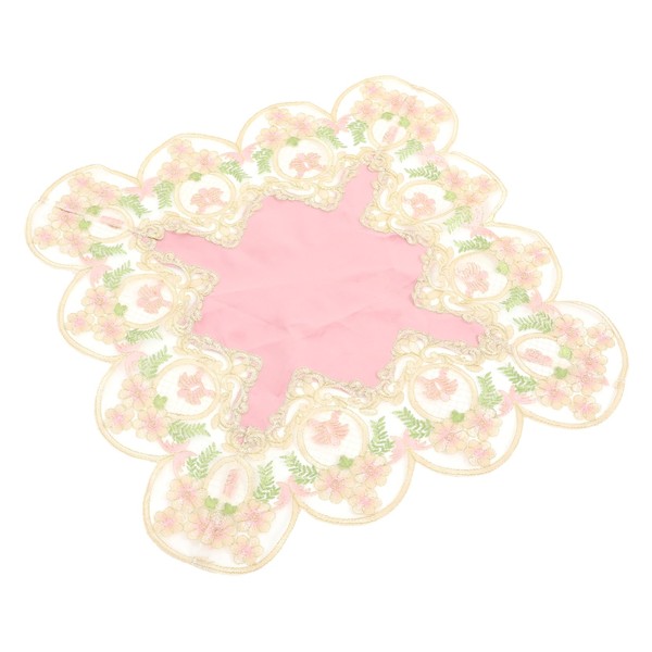 LABRIMP Elegant Princess Style Lace Tablecloth Rustic Dining Table Cover End Table Protective Cover in Pink Delicate Bedside Tablecloth