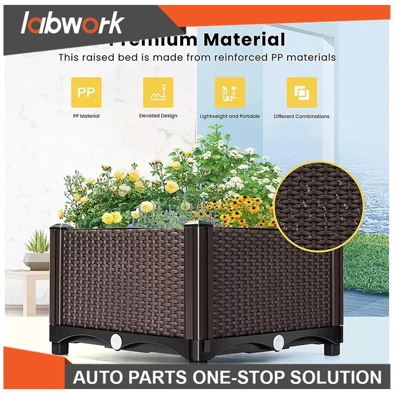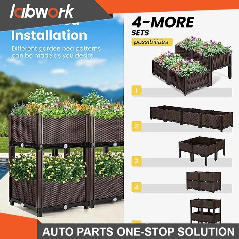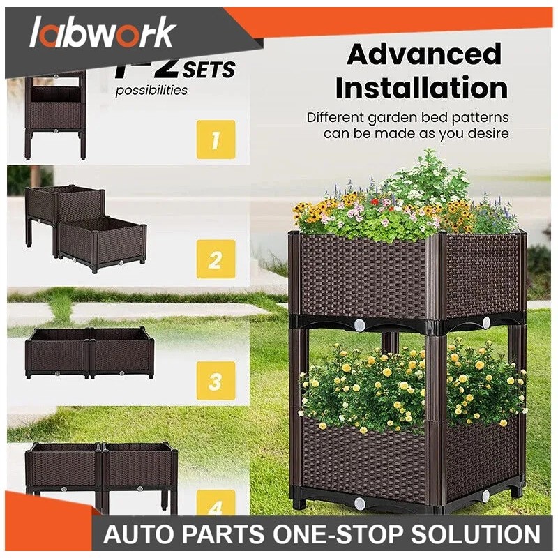 Description: -Premium Material:This Raised Bed Is Made From Reinforced PP Materials, Which Operates Perfectly In Contact With Soil And Water And Is Not Deteriorated By The Weather, Making It The Best Partner For Your Garden.With A Rattan Pattern That Is Durable, Lightweight, High Load Bearing, Washable And Reusable. The Entire Structure Is Very Stable And Can Withstand Constant Moisture And Uv Exposure. -Multi-Purpose And Space Saving:The Three-Dimensional Planting Box With Modular Design And Various Configurations Can Be Assembled Flexibly To Meet Different Planting Purposes. Indoor And Outdoor Planting Beds Suitable For Growing Fresh Vegetables, Mint, Thyme, Lavender And Other Flowers/Herbs.With Stylish Rattan Pattern Look, The Garden Bed Is Also Light-Weight And Handsome For Gardens, Patios, Balconies, Restaurants, Cafes And Anywhere That Could Use Plant Life. -Water Storage Design:Garden Beds Are Equipped With Water Storage Tray To Provide Space For Retaining Excess Water And Allowing The Roots To Fully Absorb Water And Nutrients. There Are Also Removable Stoppers On Each Side To Perfectly Manage The Water Level, Effectively Avoiding Rotting And Over-Drying. -Easy To Assemble:Raised Planter For Your Plants, Herbs And Vegetables! Easily Adjust Height And Width, Quickly And Easily Set Up.