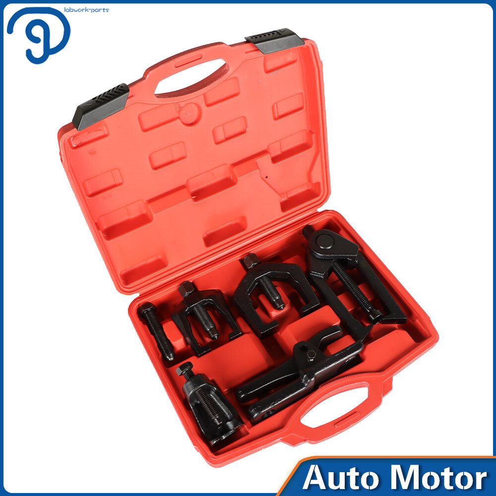 • Features: 5 pcs ball joint removal tool kit is suitable for removing the most stubborn ball joints, tie rod ends, and pitman arms. Automotive front end service kit with 5 adjustable tools, suitable for car, SUV, light truck, pickup and so on. Selected alloy steel material, with chrome-plated surface, sturdy and hard, rustproof and anti-corrosion, High quality to use. Easy installation and use. Widely used in automotive repair shop, automobile sales service shop, personal car DIY, etc. Comes with a plastic box for easy storage and portability, keeps the items inside stay in place and protected.