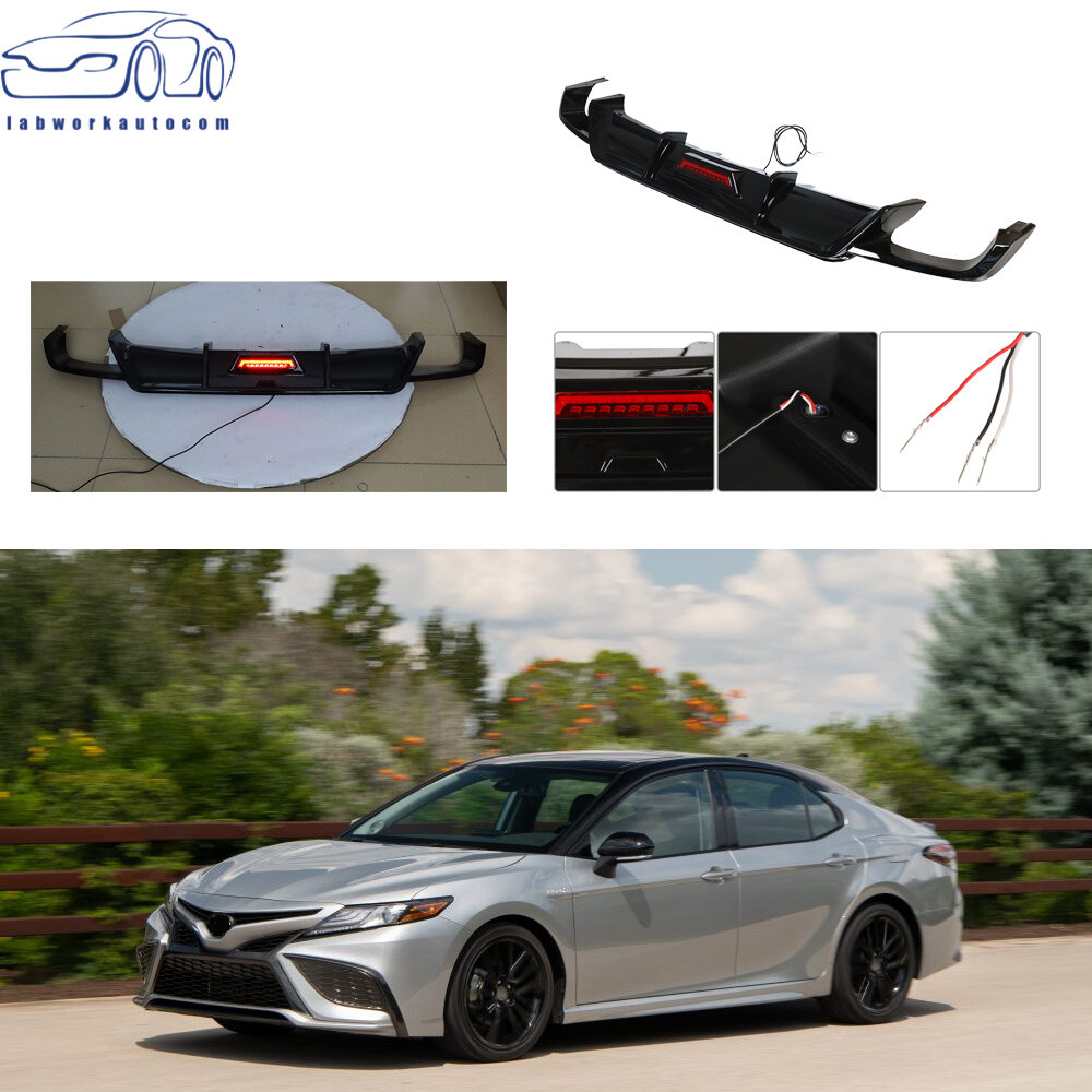 labworkauto For 2018-2021 Toyota Camry Rear Bumper Lip Spoiler Lower Diffuser With LED Light