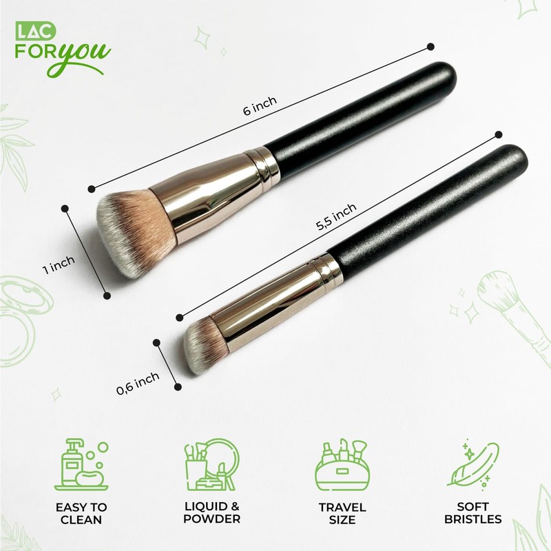 LAC FOR YOU Set of 2 Foundation and Concealer Brushes - Foundation Brush Oblique and Concealer Precision Brush - Dense Synthetic Bristles, Ergonomic Cylinder Handle