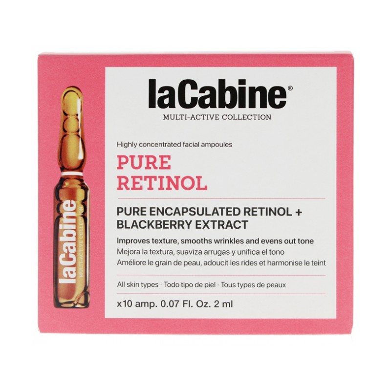LaCabine Pure Retinol 10 Phials is a concentrated facial ampoule that helps improve skin texture, softening wrinkles and harmonizing the complexion.