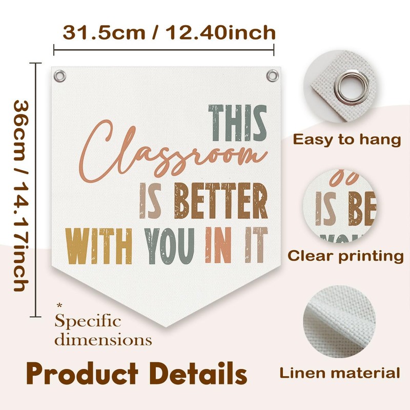 Lacama Boho Classroom Decor, Cute Neutral Classroom Must Haves Wall Decor, This Classroom Is Better With You In It,Welcome Sign, Teacher Gift, Canvas Hanging Pennant Banner Wall Door Window Sign Decor
