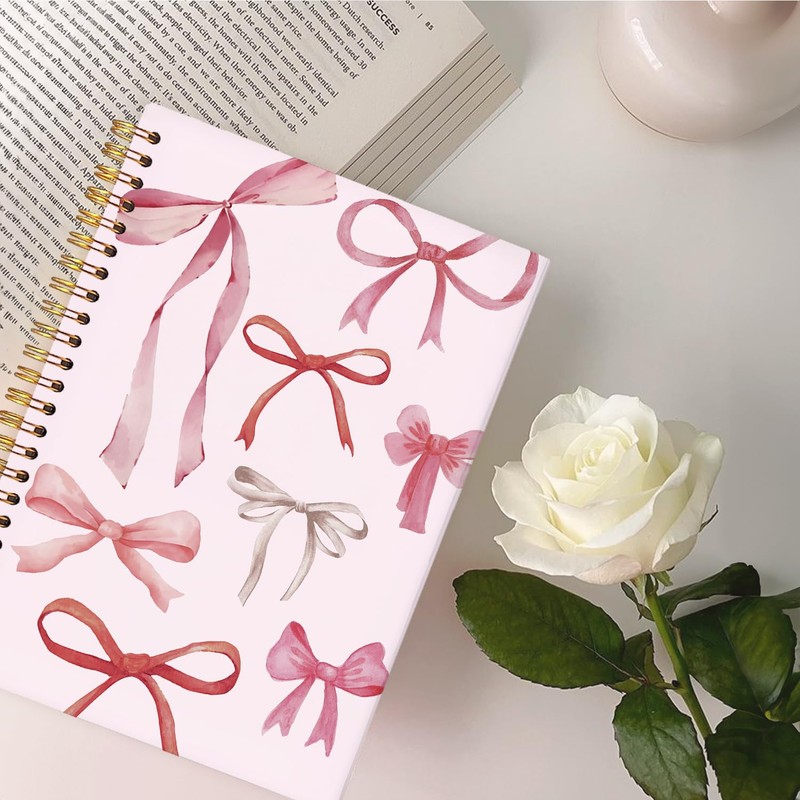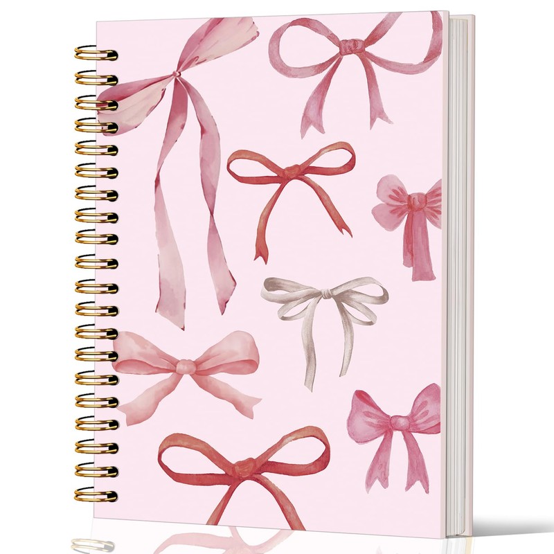 Lacama Coquette Stuff Pink Bow Notebook Journal, Cute Preppy Spiral Notebook for Teen Girls Women, 160 Pages, 5.5"x8.3" Trendy Hardcover Journaling Notebooks, Office School Supplies