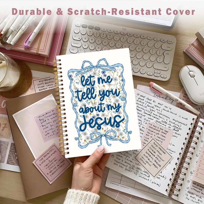 Lacama Inspirational Bible Notebook Journal, Christian Gifts for Women, Cute Bible Notebooks for Note Taking, Blue Floral Let Me Tell You About My Jesus Spiral Notebook, School Office Supplies