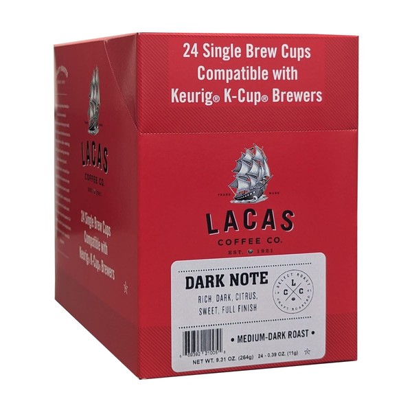 Lacas Coffee Dark Note Single Serve Cups, Compatible with Keurig K-Cup Brewers 24 Count